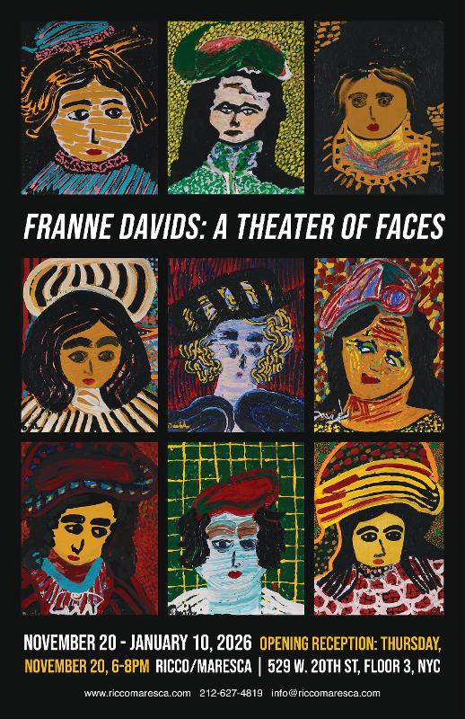 Ricco/Maresca Gallery is proud to present Franne Davids: A Theater of Faces. Following her 2024 debut, this presentation gathers an extraordinary group of small portraits that illuminate the inner world of an artist who painted entirely for herself.